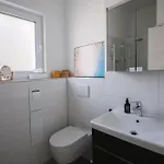 Schone, Moderne Wohnung Mit Grosszugiger Terasse dairesinde 1 yatak odası vardır. Schone, Moderne Wohnung Mit Grosszugiger Terasse dairesinde duş kabini, ayrı tuvalet ile donatılmış 1 banyo odası bulunmaktadır.